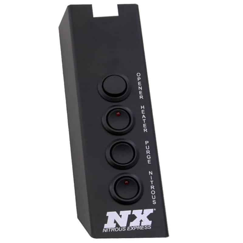 These NX switch panels offer a clean and attractive switching solution for nitrous systems as well as many other electrical devices. These switch panels include a variety of interchangeable laser engraved switch nameplates allowing you to change any switch to any location. Nameplates included are for Nitrous, Stage 2 Nitrous, Bottle Heater, Bottle Opener, Purge, Electric Fans, Water Menthol, Fuel Pump, Accessory, Go Baby Go and Ejector Seat. Need a name plate for Machine Gun, Lights or Smoke Screen? We can also custom laser engrave any nameplate via special order.